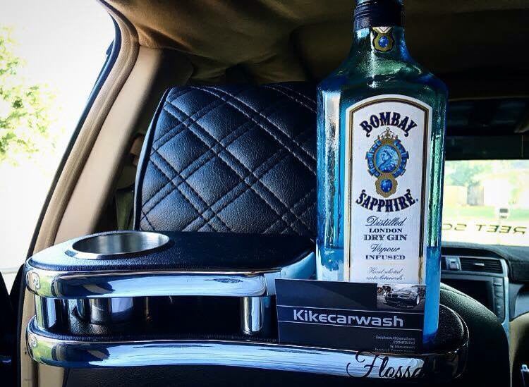 Flossdvip Plain all black headrest table pair wrapped in high quality fade resistant leather and chrome trim. Different leather options available upon request.